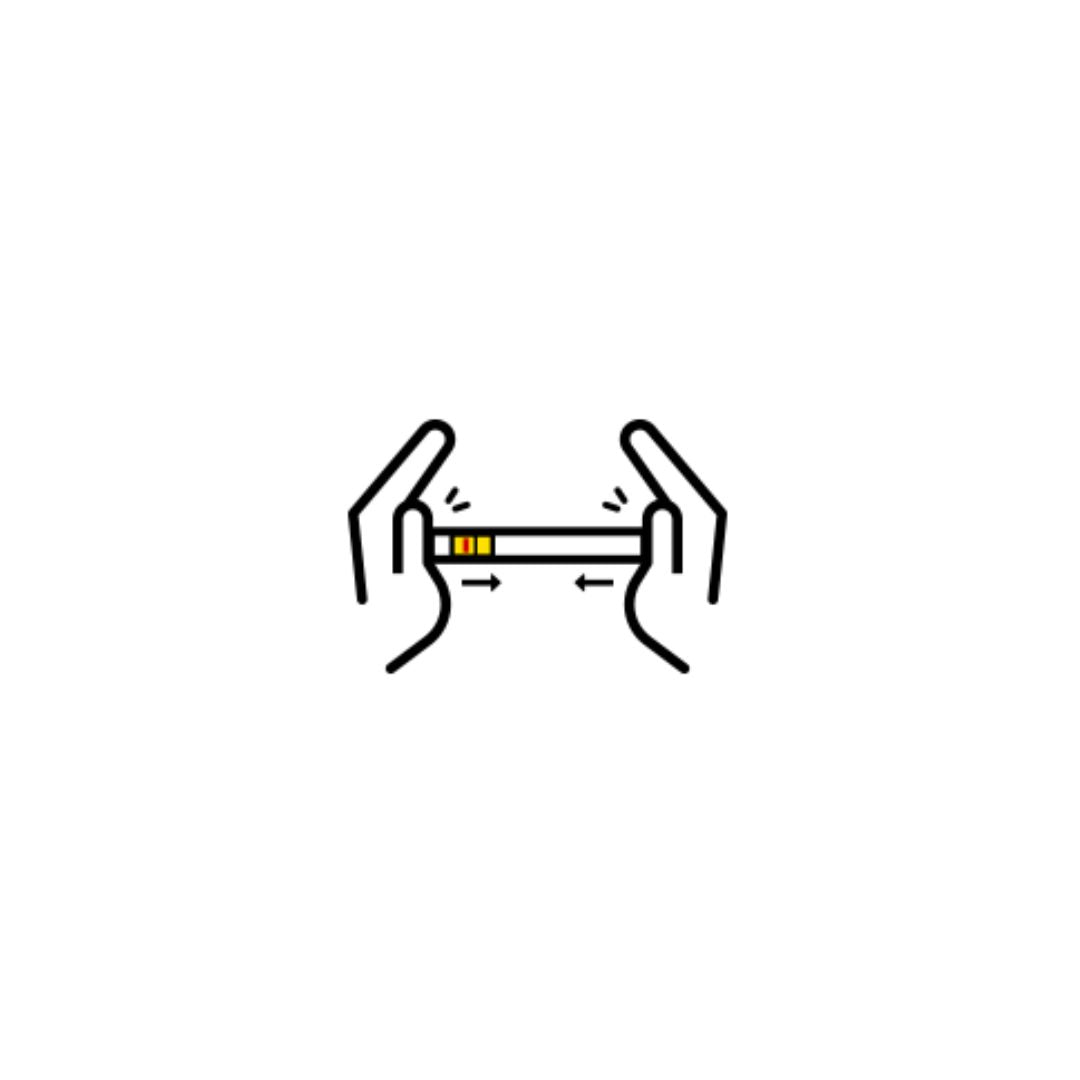 Beginnen Sie den Test, indem Sie auf die beiden weißen Spitzen drücken, um die Aluminiummembran zu perforieren.