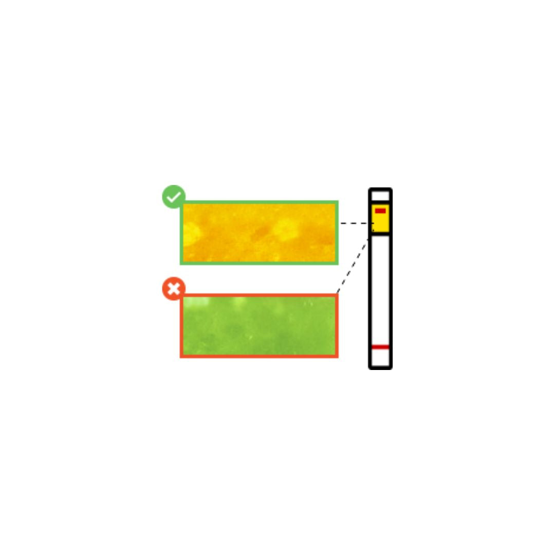 Wenn das Reagenz gelb bleibt: Füllstand zwischen 0,0 und 0,5 g/l, können Sie fahren.