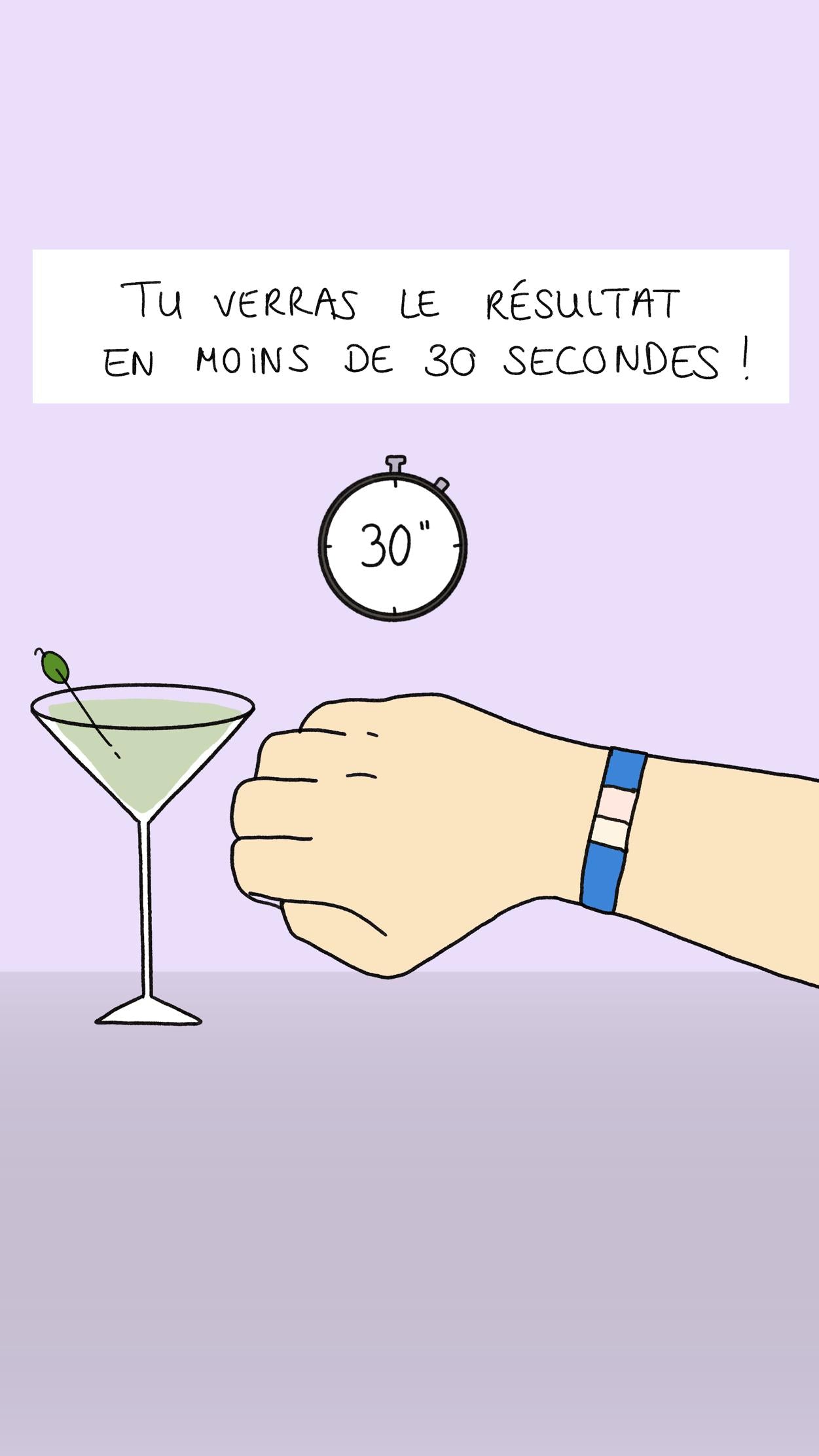 This anti-spiking Test Your Drink® wristband is a prevention tool. It does not replace vigilance or consent. If in doubt about a drink, do not consume it and contact emergency services. A negative test does not guarantee the absence of risk.